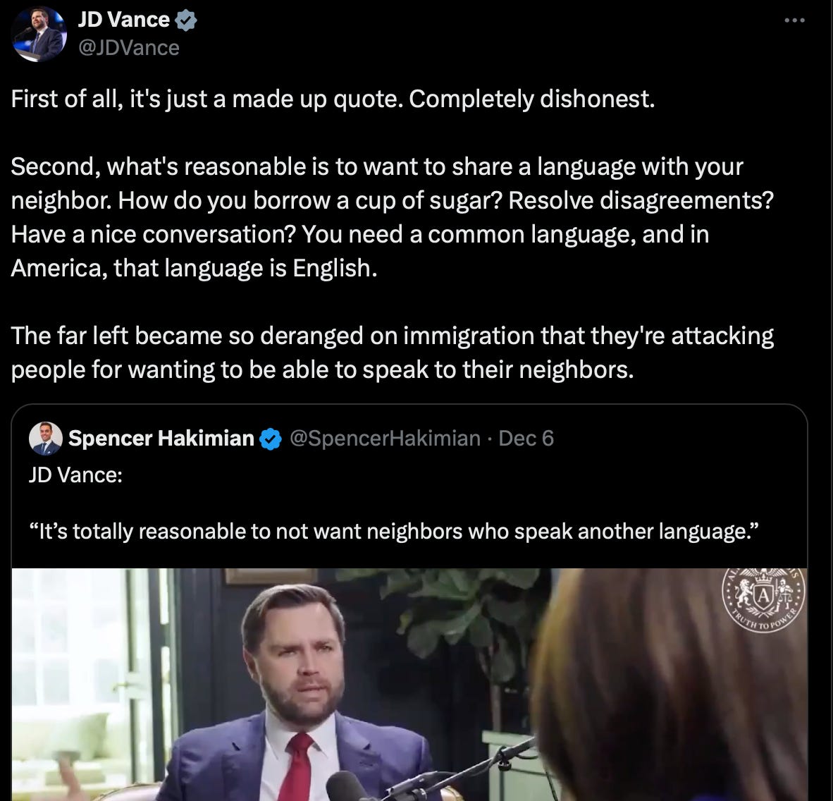 We know when Vance complains about Spanish being spoken in his neighborhood, he’s not referring to a white Christian who happens to be bilingual.